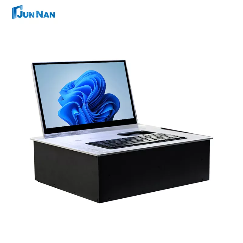 Guangzhou Junan je profesionálny výrobca konferenčného stolíka Flip Screen pre efektívne stretnutia v Číne. Výklopná obrazovka konferenčného stolíka sa používa hlavne na výkonnom konferenčnom stole na vysokej úrovni, výklopná obrazovka konferenčného stolíka má vstavanú vysokovýkonnú dotykovú funkciu, flip flop je ovládaný striedavým motorom, aby sa zabezpečila stabilná prevádzka. Výklopná obrazovka konferenčného stolíka je druh zariadenia používaného v konferenčných miestnostiach, prednáškových sálach a na iných miestach, môže skryť monitor v konferenčnom stolíku vo vnútri, keď potrebujete pomocou elektrického alebo manuálneho ovládania preklopiť monitor na pracovnú plochu, a potom ho preklopte, keď sa nepoužíva, aby ste hrali úlohu prachu, ochrany proti krádeži a udržiavali pracovnú plochu hladkú a krásnu. Vďaka motorizovanému ovládaniu môže plutva ľahko prevrátiť monitor do správneho uhla pre najlepší efekt pozorovacieho uhla. Môže byť vybavený mikrofónom, jedným preklopením kľúča, predným a zadným nastavením, funkciou proti privretiu, bezpečnou a bezstarostnou, skrytá vstavaná inštalácia je veľmi krásna.