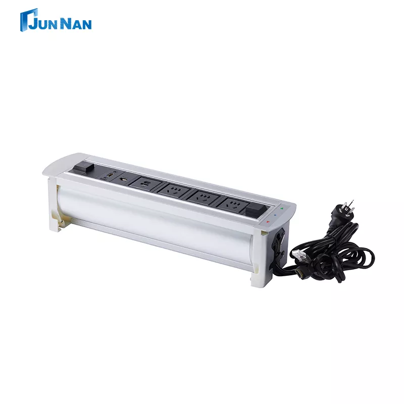 Guangzhou Junan je rozsiahly profesionálny pracovný zásuvka skrytý multifunkčný kancelársky stôl Európsky výrobca zásuvkov v Číne. Ak chcete byť zabudovaní do stola bez toho, aby ste zaberali priestor na plochu, zvážte, či vzhľad farby, tvaru a štýlu soketu je koordinovaný s celkovým štýlom stola, aby sa udržala čistá plocha a krásna. Zvyčajne sú vybavené rôznymi typmi zdvihákov, ako sú európske konektory, USB porty atď., Aby sa uspokojili potreby nabíjania a energie rôznych zariadení.