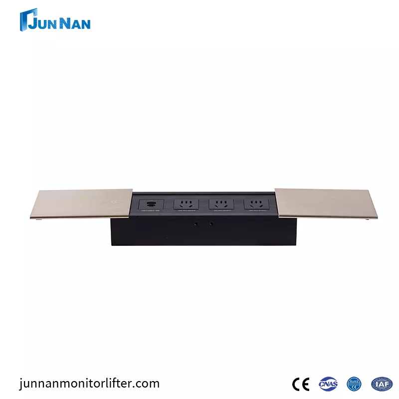 JUNNAN Universal Schuko Socket motorizovaný vyskakovací výstup pre kuchynský stôl funkcia jednodotykového výklopného panelu a zásuvka skryje pracovnú plochu bez toho, aby zaberala miesto. Naša pokročilá vyskakovacia zásuvka pre stolné počítače sú najnovším typom zásuviek, ľahko sa udržiavajú, možno ich zakúpiť veľkoobchodne alebo prispôsobiť zákazníkom. Okrem toho majú naše zariadenia junnan mnoho certifikátov, ako je CCC, CE certifikácia, ROHS, certifikácia ISO atď. Naše výrobky sú bezpečné a kvalitné, s exportnou kvalifikáciou, priamym predajom v továrni, priaznivou cenou, vlastnou továrňou a podnikajú už mnoho rokov.
