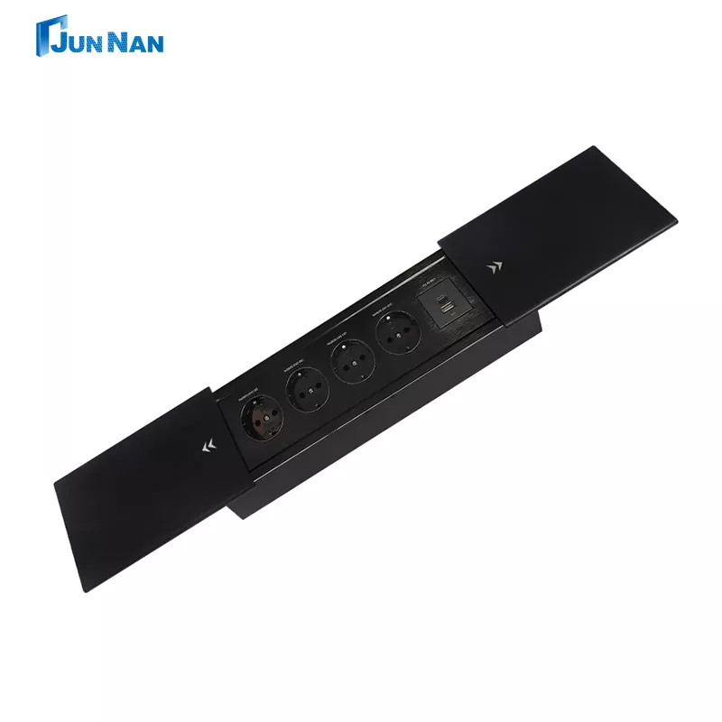 Guangzhou Junnan je profesionálny univerzálny zásuvkový motorizovaný výsuvný výsuv Schuko pre výrobcu kuchynských stolov v Číne. Štýlová vyskakovacia stolová zásuvka sa používa hlavne v kuchynských spotrebičoch, konferenčných stoloch, vysokokvalitných zásuvkových multiportových napájacích zdrojoch, pohodlnejšej vstavanej zásuvke plug and play. Manuálna flip zásuvka je špeciálny dizajn zásuvky, pomocou ručného ovládania je možné realizovať preklopenie panelu zásuvky. Tento dizajn umožňuje skryť zásuvku, keď sa nepoužíva, aby bola pracovná plocha alebo stena čisté a krásne; a v prípade potreby ho možno ľahko vyklopiť zo zásuvky a zapojiť a odpojiť el.