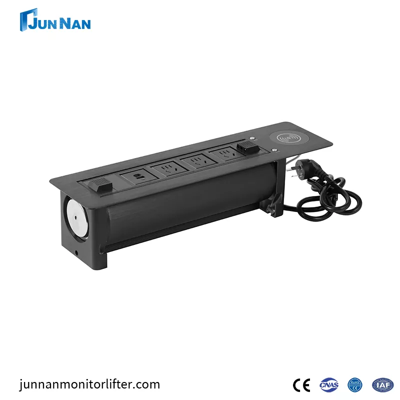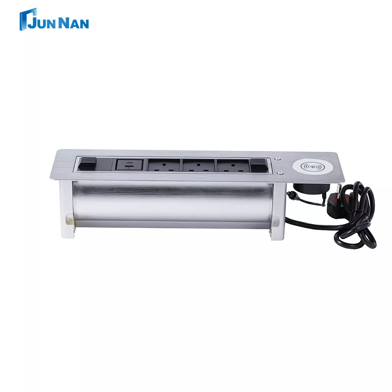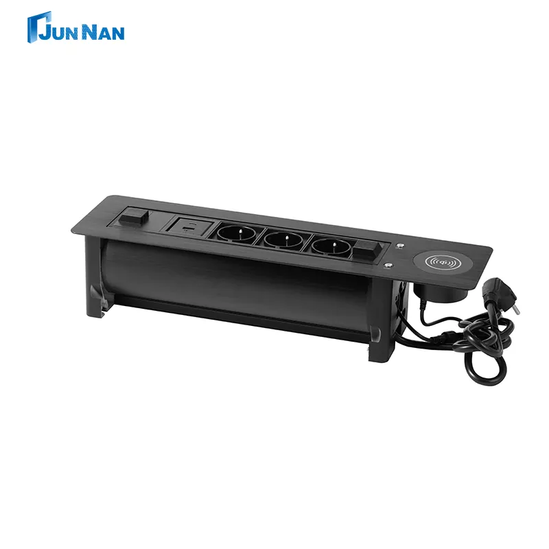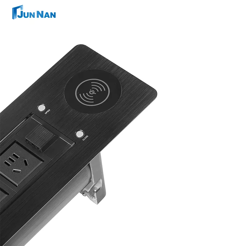 Guangzhou Junan je profesionálny výrobca inteligentných vyskakovacích stolových zásuviek s USB nabíjačkou a bezdrôtovým nabíjaním v Číne. Vyskakovacia stolová zásuvka je druh zásuvkového zariadenia inštalovaného na pracovnej ploche, ktoré sa dá vyklopiť alebo zdvihnúť špecifickým spôsobom, aby bolo používanie pohodlnejšie a zároveň udržalo pracovnú plochu upratanú a ľahko sa používa na konferencie. tabuľky. Zvyčajne sa zdvihne alebo vyklopí dotykom prepínača a keď sa nepoužíva, dá sa spustiť a skryť, v jednej rovine s pracovnou plochou bez ovplyvnenia bežného používania pracovnej plochy. Vybavený AC konektorom a USB modulom. AC konektor môže byť navrhnutý s bezpečnostnými dvierkami, aby sa predišlo nebezpečenstvu úrazu elektrickým prúdom spôsobeného vložením cudzieho predmetu na jednej strane, a modul USB môže poskytovať viacero výstupných portov, podporovať výstup rýchleho nabíjania a prispôsobiť sa rôznym rýchlym nabíjaniam. protokoly.